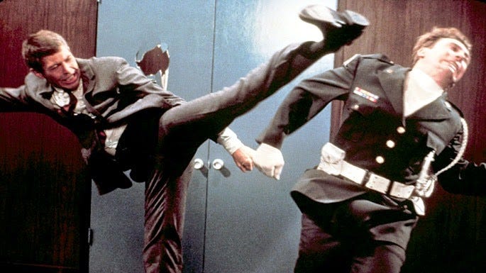 Study James Coburn’s map-of-Mexico face in 1960’s The Magnificent Steve and you could be forgiven for thinking the lithe actor was in his mid-forties.